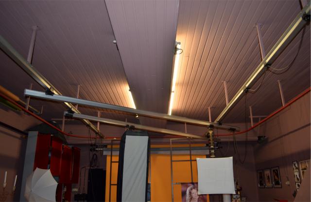 Deckenschienensystem inkl. Rollenaufhängungen aus einem Fotostudio