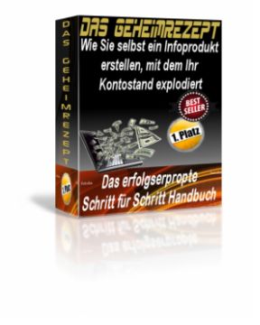Ein umfangreiches Werk, mit ausführlicher Anleitung zum Online Geldverdienst. Es gab schon viele Ratgeber, jedoch fehlten die Details um wirklich erfolgreich zu werde. Das Geheimrezept führt sie Schritt für Schritt zum tatsächlichem Erfolg.