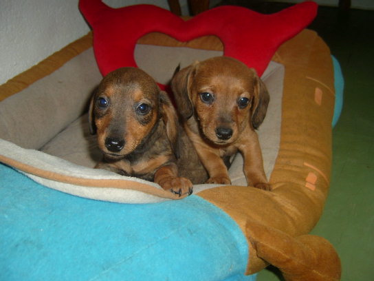 Wir 2 Teckel Rüden und eine Hündin -gei.entw.Chip u.Pap.suchen liebevolles Zuhause.Wir sind rot/braun mit schwarzem deckhaar .